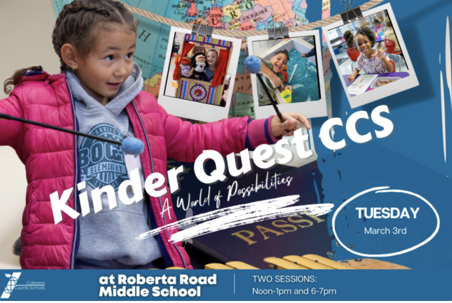 For rising kindergarten families: Kinder Quest CCS on March 3rd at Roberta Road Middle